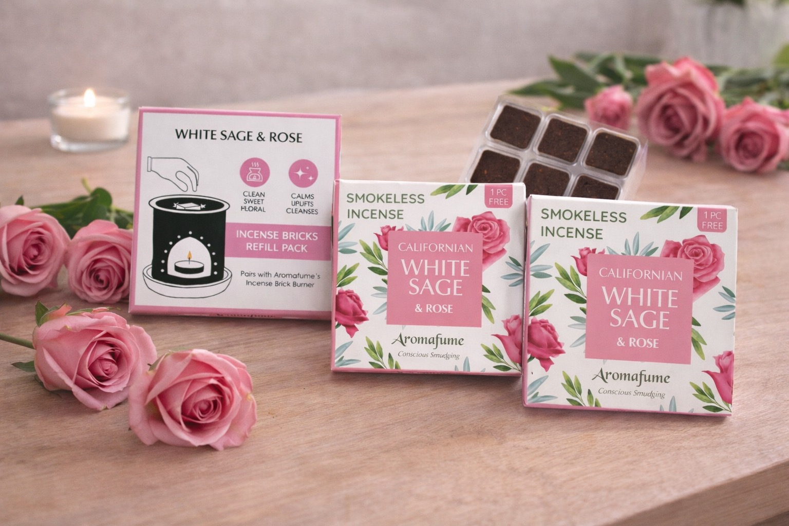🌹 Briques d’Encens Sauge Blanche & Rose – Aromafume
