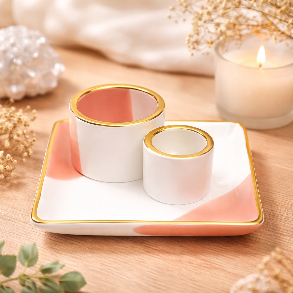 Né de la rencontre entre la terre et le feu, ce brûleur en céramique aux nuances de rose délicat, de blanc nacré et de doré lumineux accueille la fumée sacrée comme un souffle d’intention. Sa surface lisse et émaillée capte la lumière et diffuse une énergie douce, apaisante, presque chuchotée.