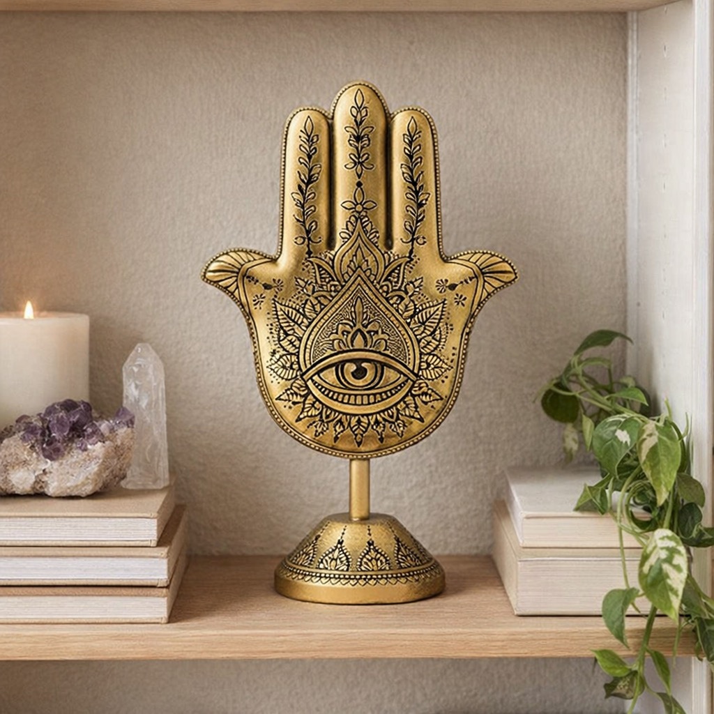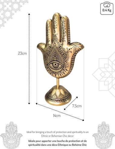 Placée dans un espace de vie, une salle de pratique spirituelle ou une vitrine, cette Main de Fatima devient un véritable talisman décoratif, alliant beauté, symbolisme et énergie protectrice. Elle invite au recueillement, à la confiance et à l’ancrage, tout en sublimant l’espace qu’elle habite.
